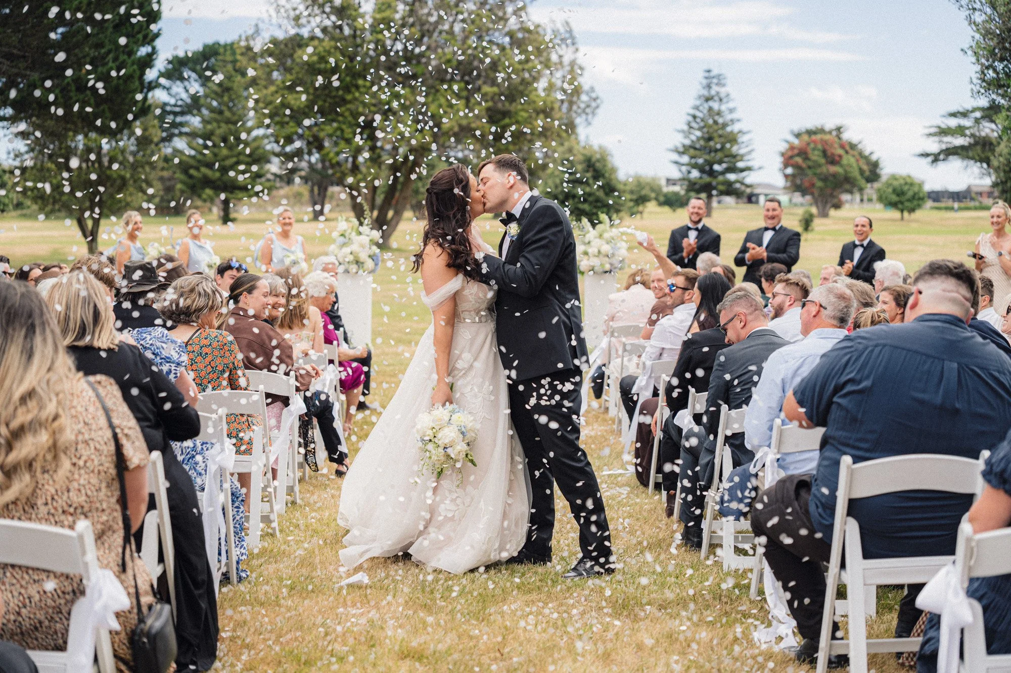Celebrating at Castlecliff with Emily & James. From the brothers making a dash to the marquee to get the confetti, Ollie bringing the rings and golf carting around the front 9.